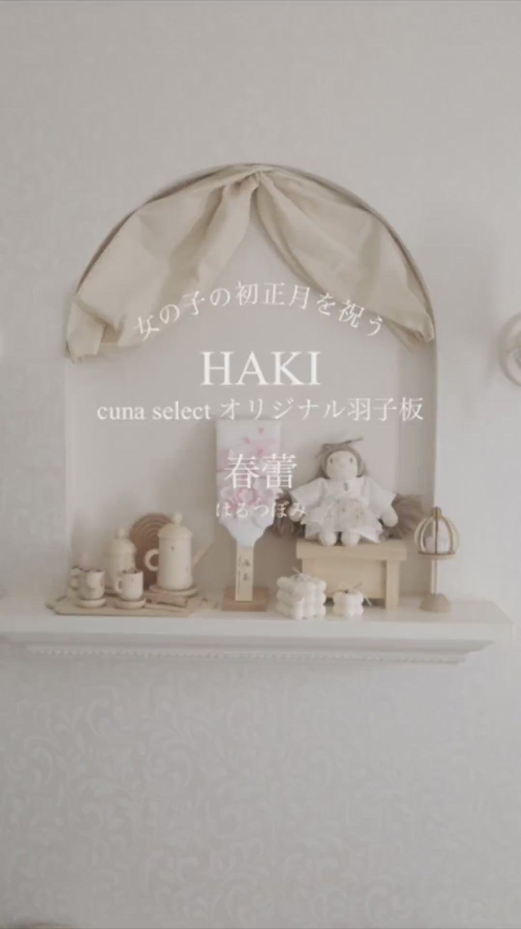 cuna selectでは、節句飾りで大人気の 「白粋(HAKI)」とコラボし、女の子向けのオリジナル羽子板「春蕾(はるつぼみ)」をご用意。持ち手部分に名入れができたり、お花のひとつを髪飾りに使えたりと、こだわり満載の逸品に仕上がりました。